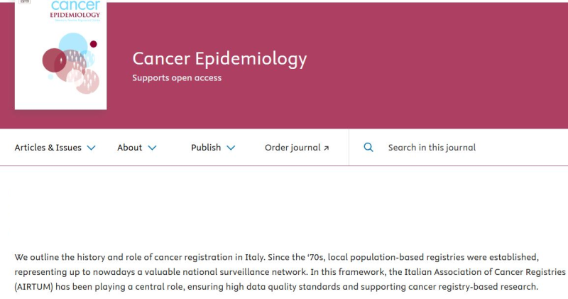 È online sulla rivista scientifica Cancer Epidemiology lo special issue dell’Associazione Italiana Registri Tumori (AIRTum), dedicata alla situazione dei tumori maligni in Italia.